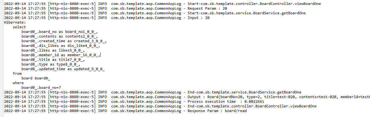 1) AOP 로그출력 설정 : /template-springboot/src/main/java/com/sb/template/aop/CommonAopLog.java