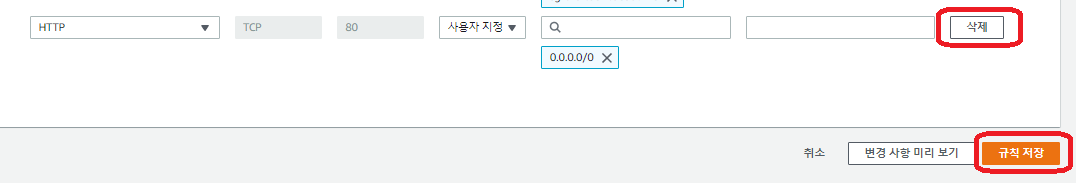 ※ 실습을 완료한 후엔 AWS콘솔에 접속해 보안그룹을 수정하여 80번 포트를 막아둡니다.