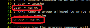 php-fpm의 설정파일에서 user와 group의 기본값(apache)을 nginx로 변경합니다.